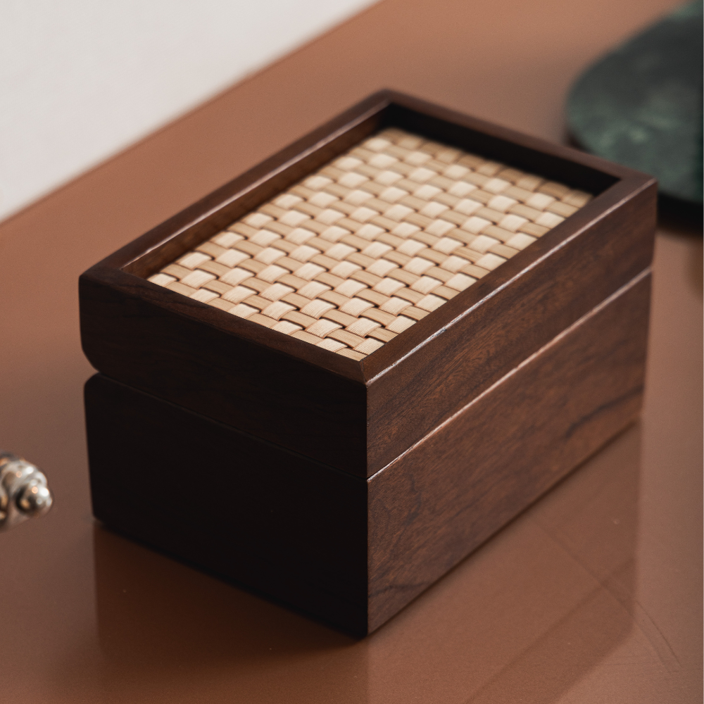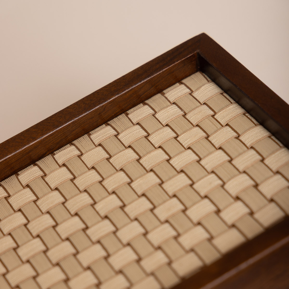 Caixa decorativa Intrecciato, inspirada no design italiano e na técnica clássica de trançado que se tornou símbolo de sofisticação.
